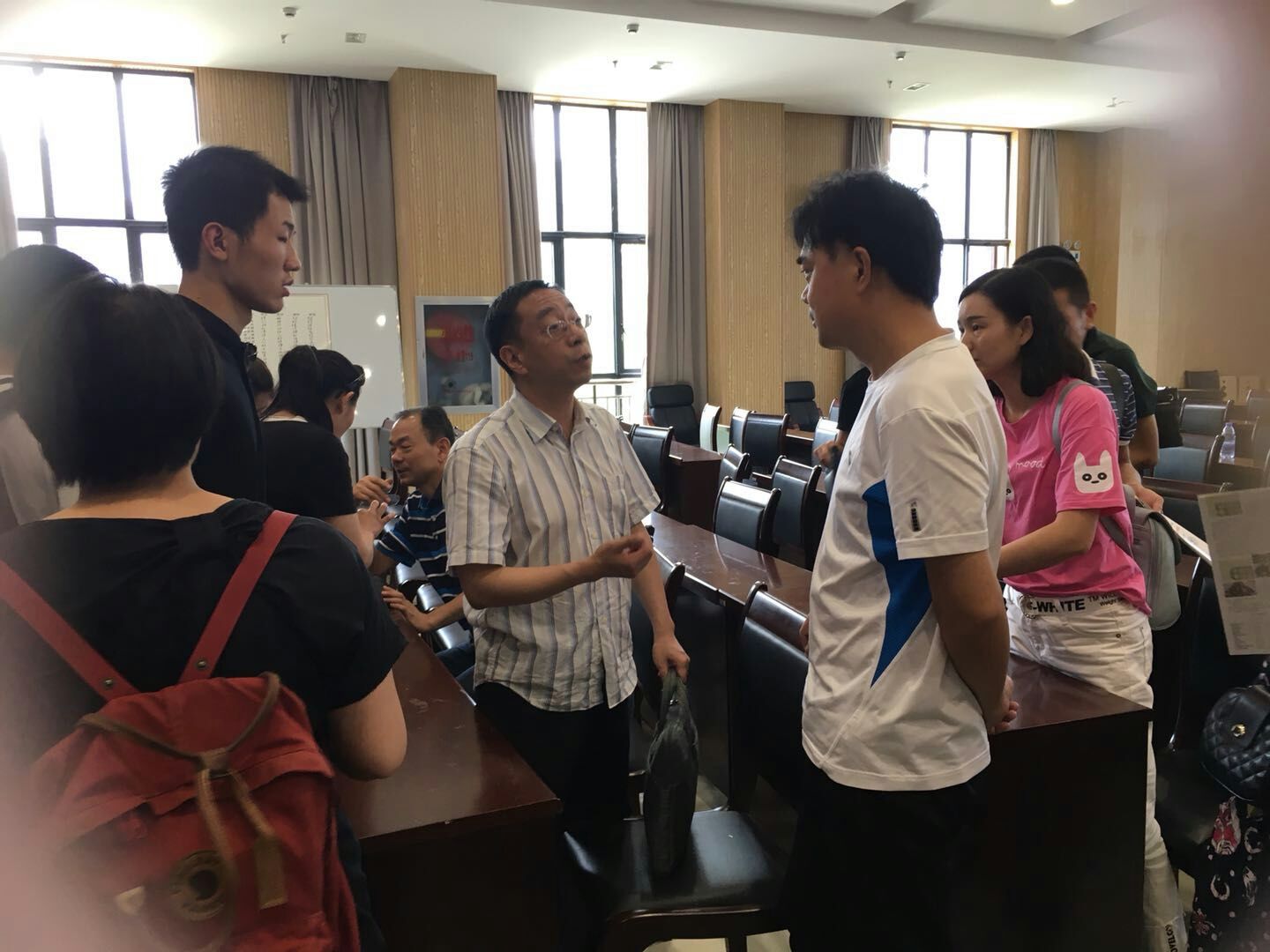 讲座之后,公司党委副书记周新宇、员工办公室主任周觉民老师依次上台进行公司招生政策、填报志愿注意事项、专业选择、就业前景等员工和家长关心的问题进行了宣讲,并与听众互动交流,员工和家长们把公司老师们紧紧围住,提出各种关于招生的问题,周新宇副书记和周觉民老师给予了热情、耐心、细致的解答,并留下联系方式便于今后再次咨询。